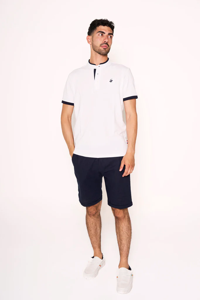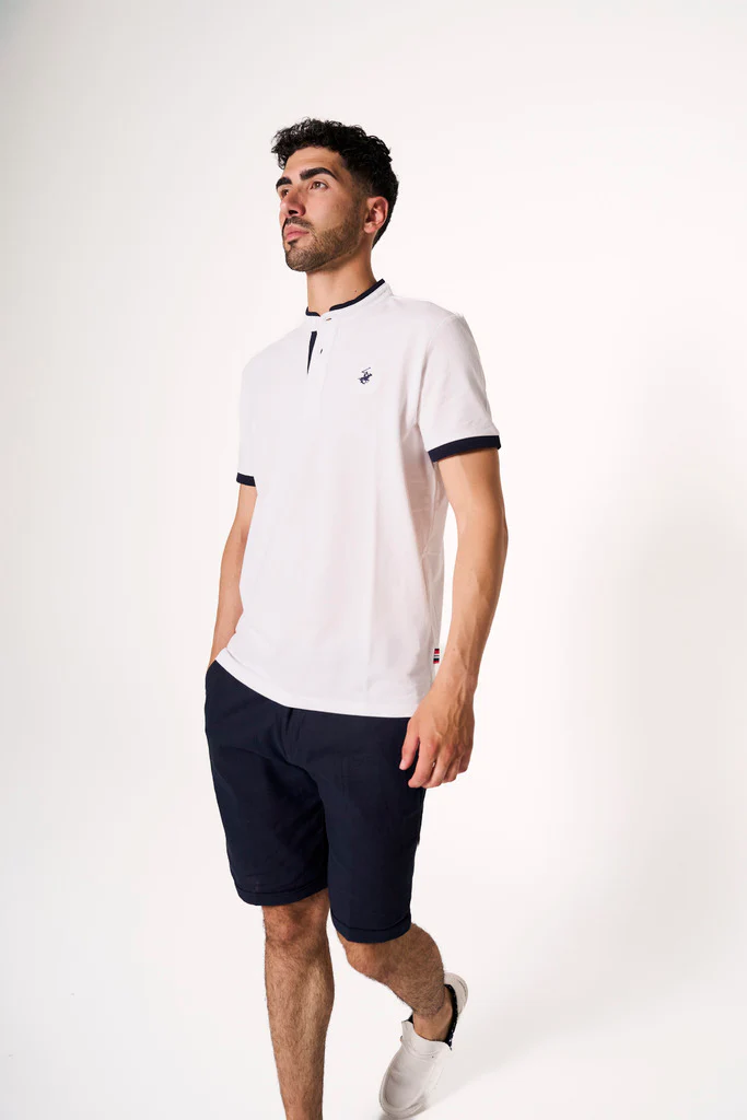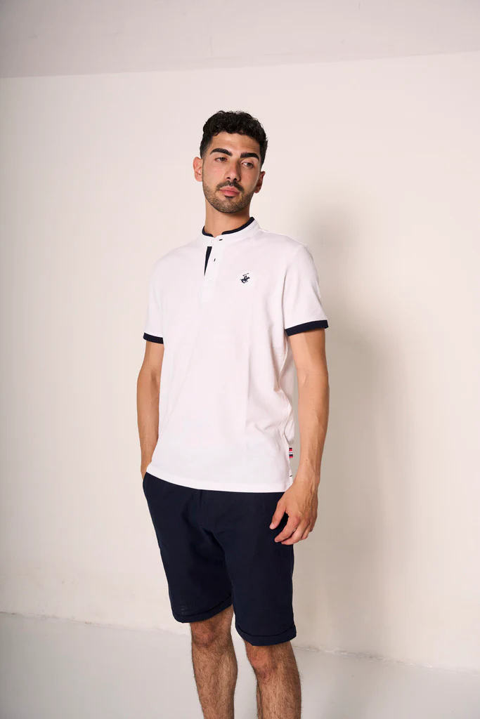 Polo in piquet con collo alla coreana e dettagli a contrasto