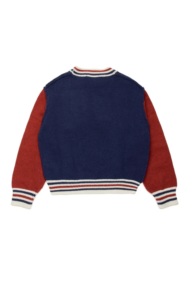 Pullover girocollo a maniche lunghe in maglia misto lana colorblock. Presenta un logo jacquard sul davanti. Lavorazione a trecce sul giromanica. Costine su girocollo, polsini e fondo. Un’opzione casual facile da abbinare.