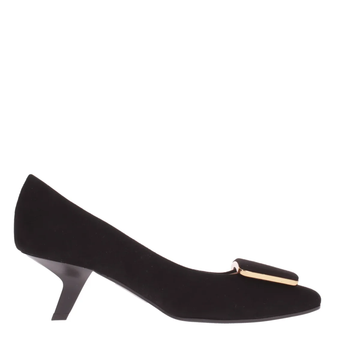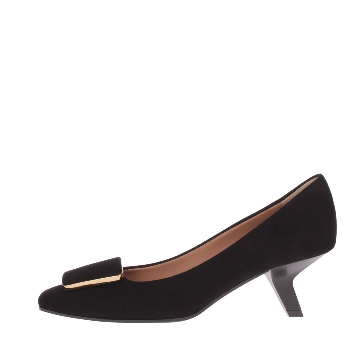 tacco 5,5 cm Materiale: Camoscio Fondo: 100% cuoio Stagione: Autunno Inverno BRIGID NERO