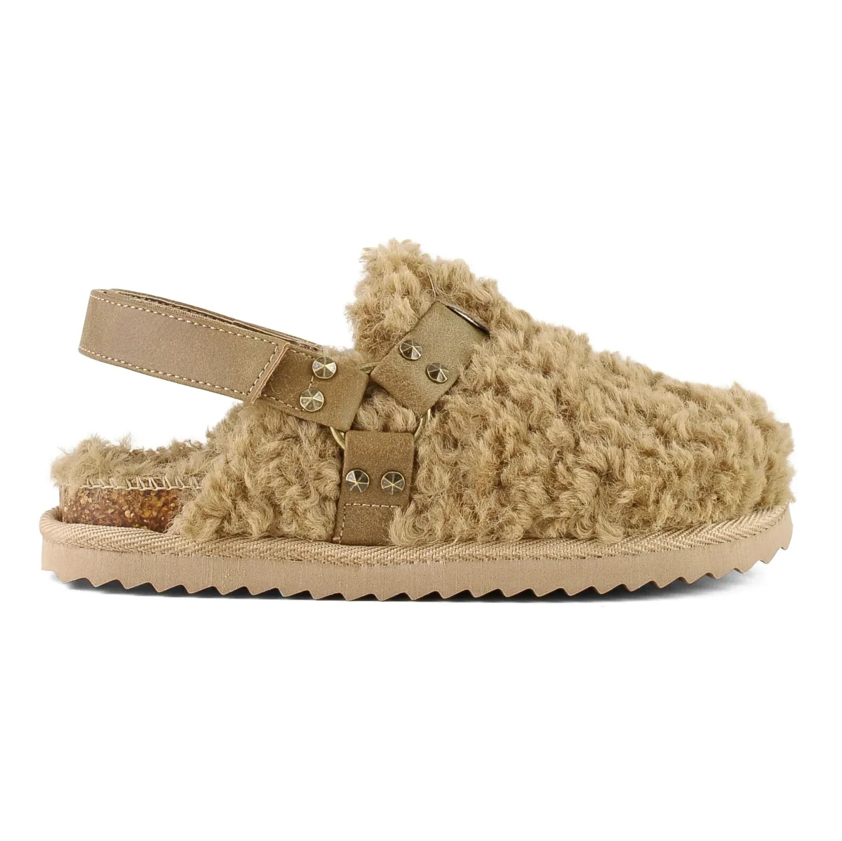 uesto sabot platform in teddy ha un cinturino in pelle nabuk che rende la calzata comoda e confortevole. La suola platform unita ad anello e borchie in metallo donano grinta al look. Adatto ad outfit metropolitani di ogni etร , sa dettare stile sia in un contesto urbano che tra i paesaggi d’alta quota piรน selvaggi.