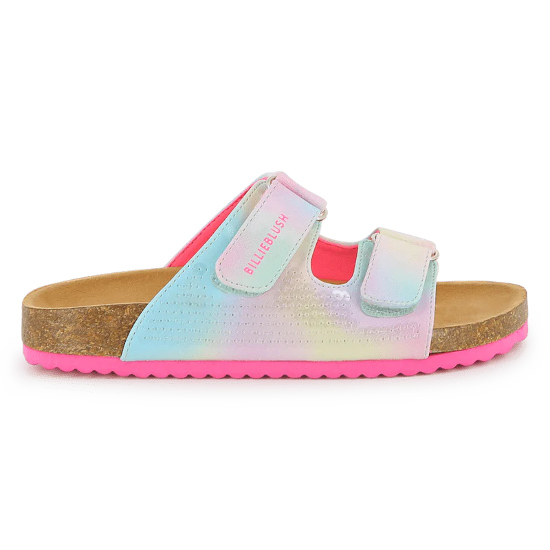 Radiose, queste slide BILLIEBLUSH combinano imitazione e paillettes per un look allegro e civettuolo. La cinghia a uncino e anello garantisce una calzata facile e regolabile, mentre la soletta in tessuto dona morbidezza al gradino. La suola leggera garantisce ammortizzazione e facilitร durante le partite. Un must per completare un outfit estivo con un tocco scintillante. (vedi glossario)