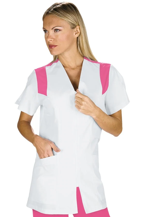 Molto comoda ed elegante la casacca Santorini si caratterizza per la praticitร  di utilizzo, leggerezza dei tessuti e comoditร  del taglio che prevede spacchetti sulle maniche corte per agevolare i movimenti. Dal disegno ampio con comoda zip centrale รจ particolarmente indicata per attivitร  di servizi, assistenza ma anche per pulizie ai piani ed attivitร  sanitarie e centri benessere. I tessuti sono leggeri e traspiranti in misto cotone.