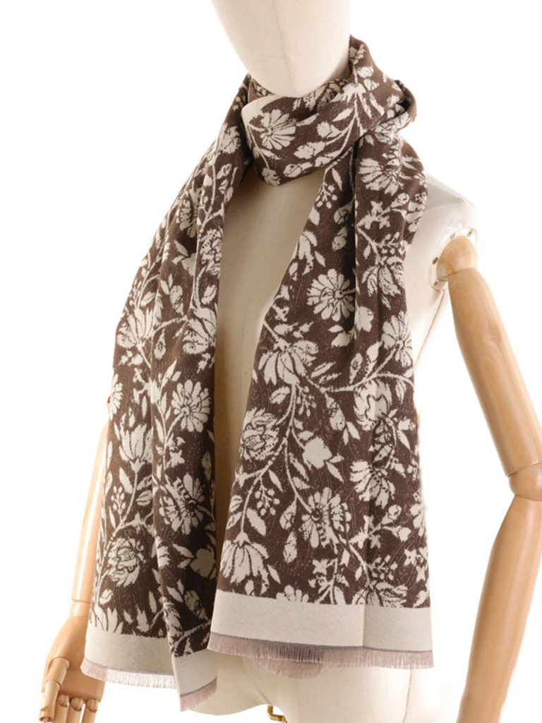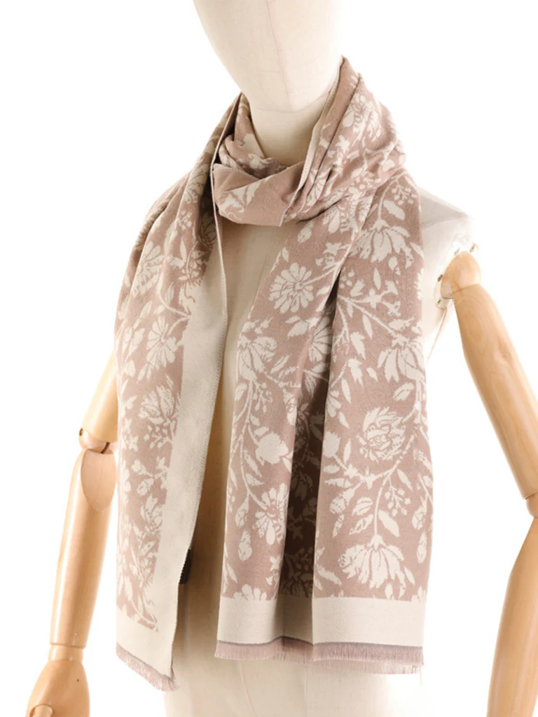 Questa sciarpa presenta una raffinata fantasia floreale a contrasto su base in tinta unita. Morbida e avvolgente, รจ perfetta per aggiungere un tocco di femminilitร e stile ai tuoi look quotidiani. Disponibile in diverse varianti colore, si adatta facilmente sia a outfit casual che piรน eleganti.