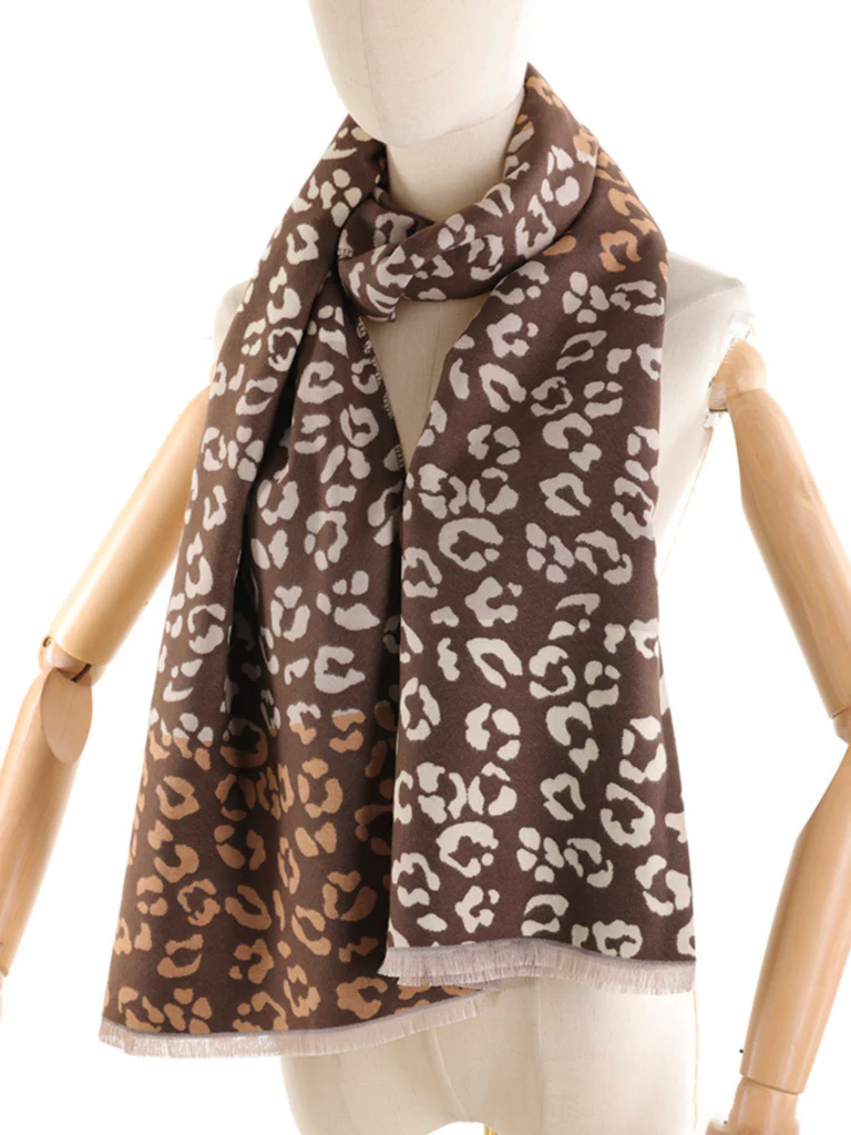 Sciarpa con stampa animalier realizzata in tessuto leggero ma caldo, unisce comfort e versatilitร , perfetta sia per look casual che eleganti. Disponibile in diverse varianti colore per adattarsi a ogni personalitร e occasione.