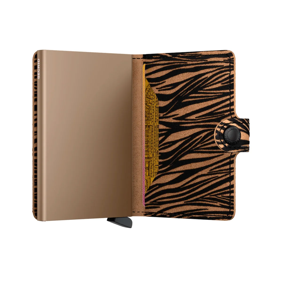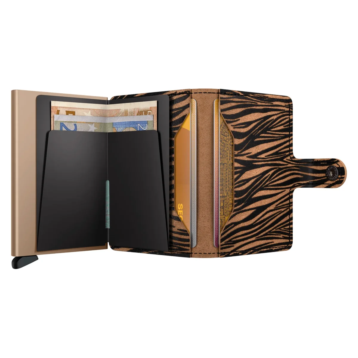 Piccolo nelle dimensioni ma sorprendentemente capiente: il Miniwallet soddisfa tutte le esigenze. Il rivestimento esterno puรฒ contenere banconote, scontrini e tessere, mentre il Cardprotector in alluminio consente di estrarre le carte con un semplice movimento, impedendo che si pieghino, si spezzino o che vengano lette senza che ce ne accorgiamo.