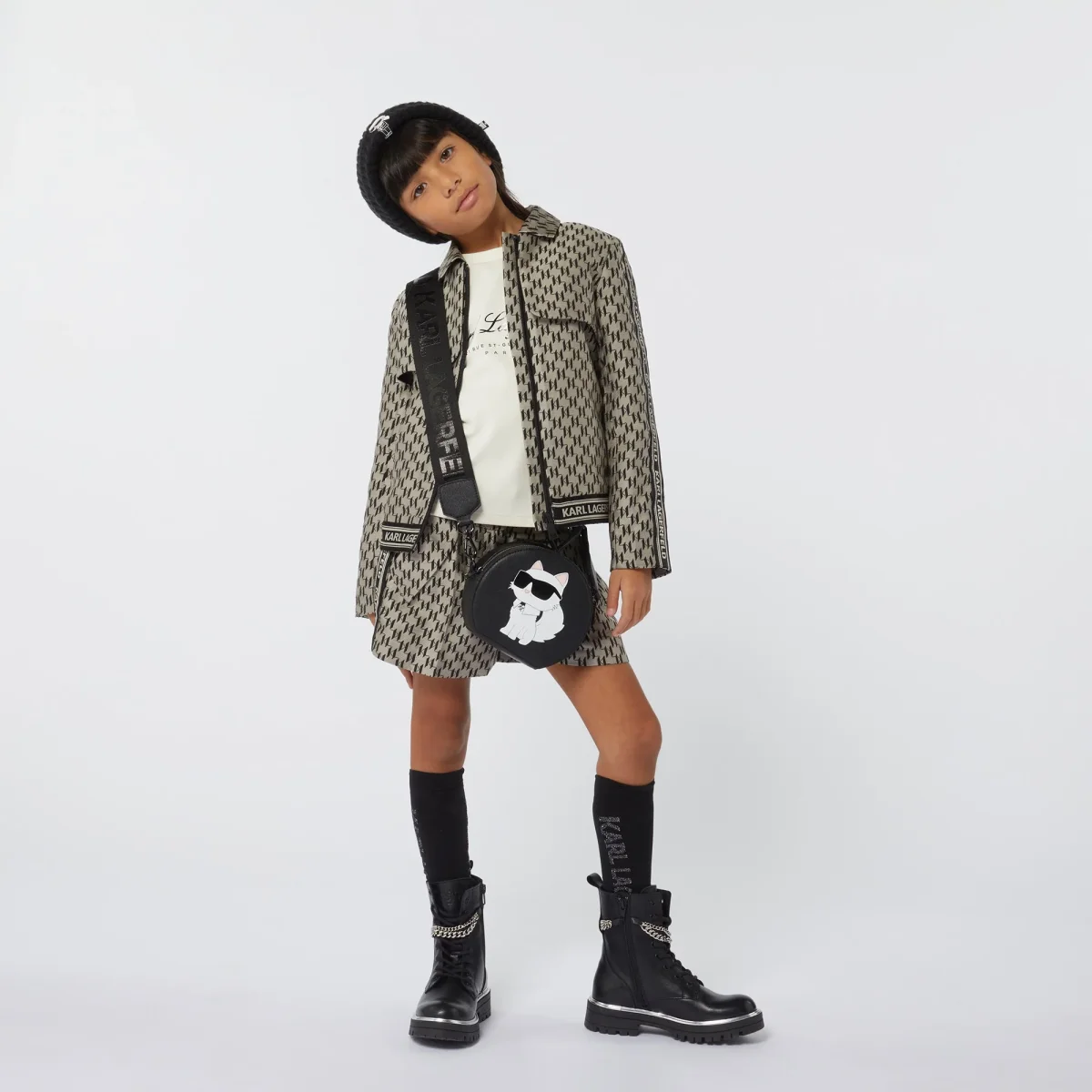 Questi pantaloncini da cerimonia KARL LAGERFELD KIDS sono perfetti per creare un outfit elegante e moderno. Il modello con zip รจ impreziosito dal logo KL in jacquard a contrasto all-over e da fettucce a righe logate sui lati. COMPOSIZIONE 64 % Poliestere, 36 % Acrilico, Fodera 53 % Poliestere, Fodera 47 % Viscosa