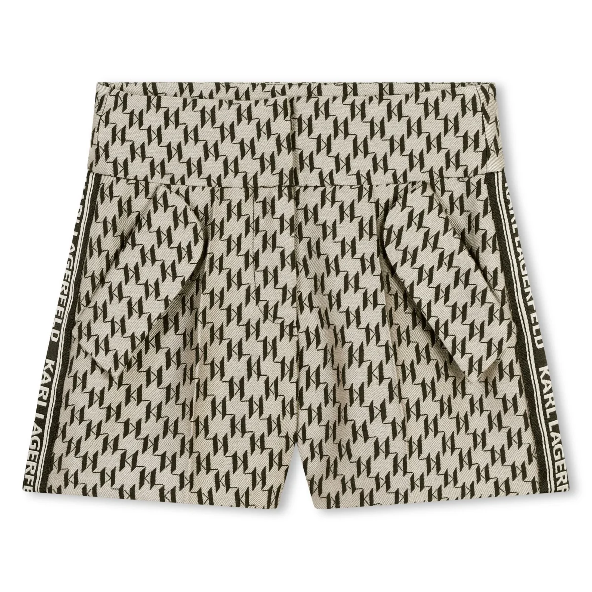Questi pantaloncini da cerimonia KARL LAGERFELD KIDS sono perfetti per creare un outfit elegante e moderno. Il modello con zip รจ impreziosito dal logo KL in jacquard a contrasto all-over e da fettucce a righe logate sui lati.