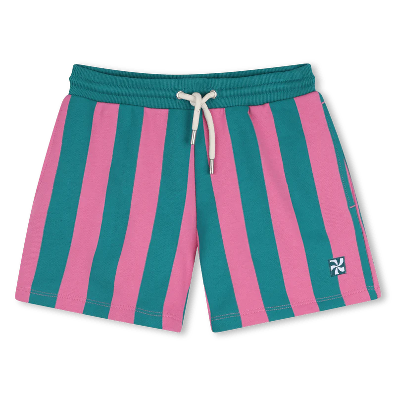 SHORTS IN FELPA A RIGHE ROSA E VERDE OLIVA KIDS AROUND