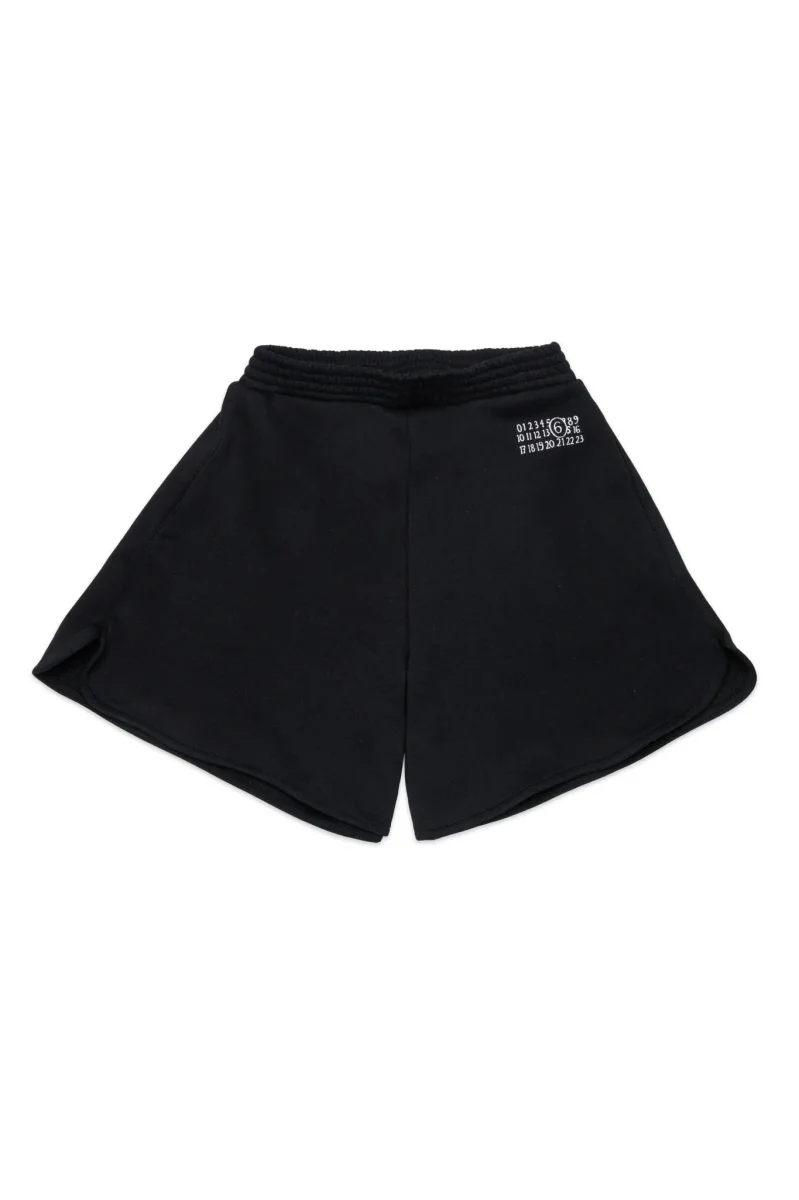 Shorts con stampa Nero/bianco, cotone, caratteristico logo con numeri, vita elasticizzata, orlo dritto e due tasche con inserti. Composizione cotone 100%