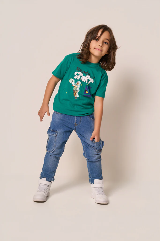 Descrizione:T-shirt bambino dal design sportivo e dinamico, perfetta per un look casual ricco di energia. Realizzata in morbido cotone traspirante, garantisce comfort e libertà di movimento durante tutta la giornata.Il modello presenta girocollo classico e vestibilità comoda, ideale per accompagnare ogni attività. La stampa frontale “Ready Start” con grafica ispirata al mondo del tennis dona un tocco vivace e grintoso, perfetto per piccoli amanti dello sport e dell’avventura.Facile da abbinare a jeans, jogger o bermuda, è il capo ideale per la scuola, il tempo libero e le giornate all’aria aperta. Fresca, pratica e super cool.