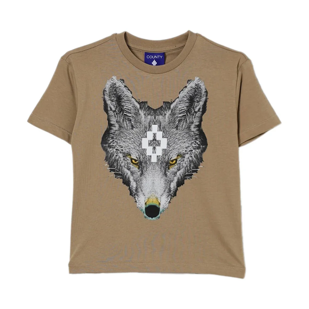T-SHIRT BEIGE CON STAMPA LUPO MARCELO BURLON