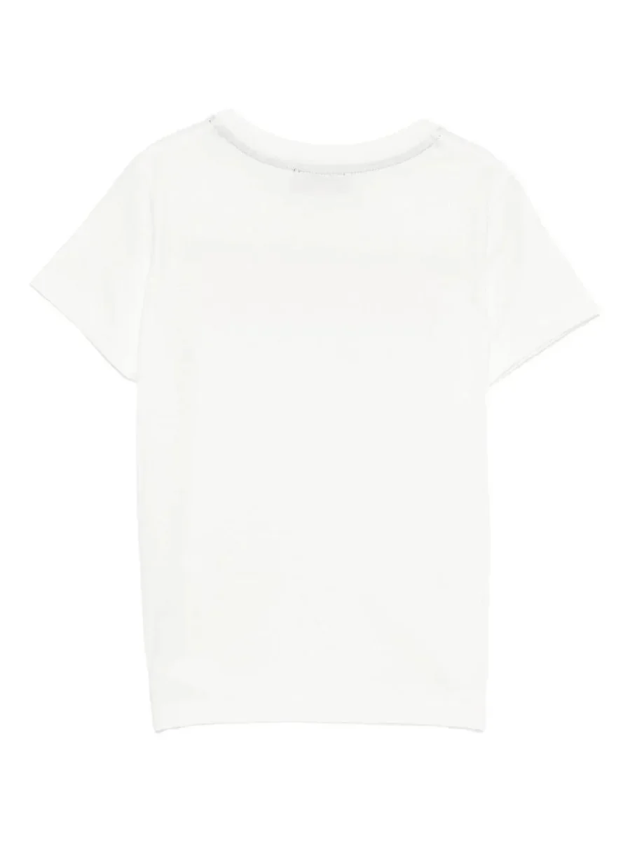Realizzato in cotone 100%, poliestere 100%. Il prodotto presenta un colore bianco, decorazione con paillettes, maniche corte, scollo rotondo, dettaglio logo, cotone.