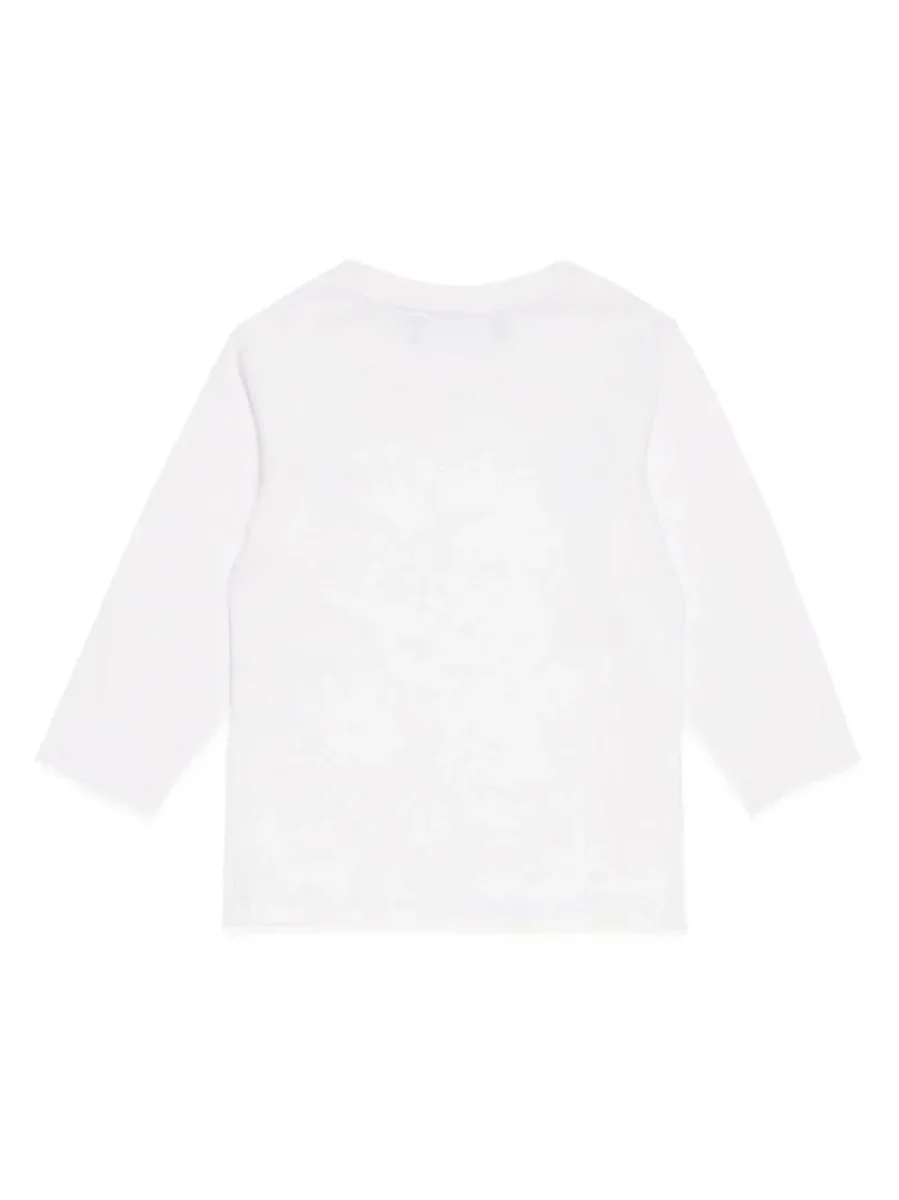 maglietta manica lunga bianca con nome del brand stampato in nero
