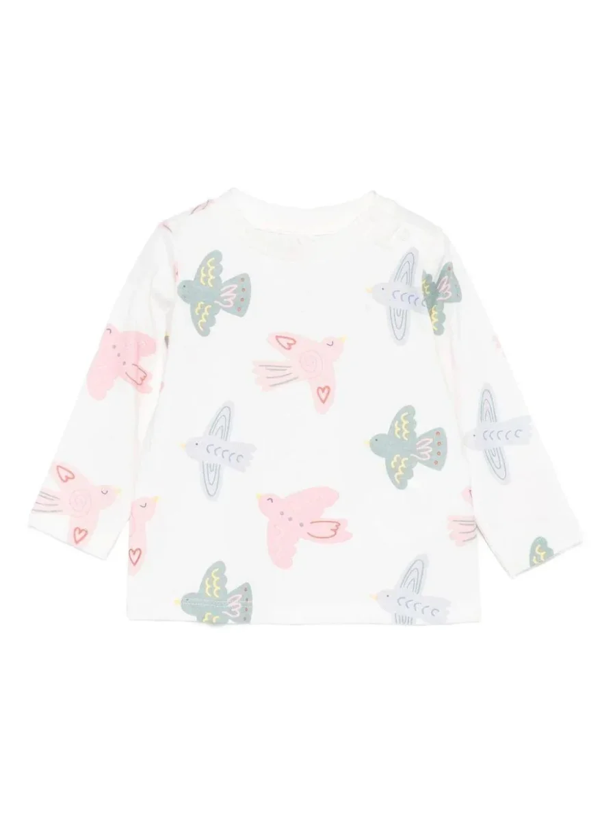 T-SHIRT BIANCA MANICA LUNGA CON UCCELLI COLORATI STELLA MCCARTNEY