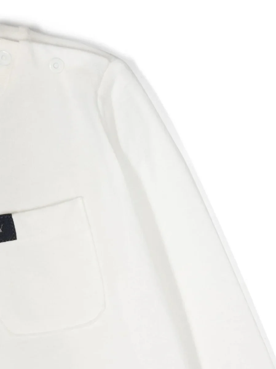 T-shirt a maniche lunghe . Applicazione frontale con logo, tasca frontale applicata, girocollo, maniche lunghe e orlo dritto. Composizione: cotone 100%