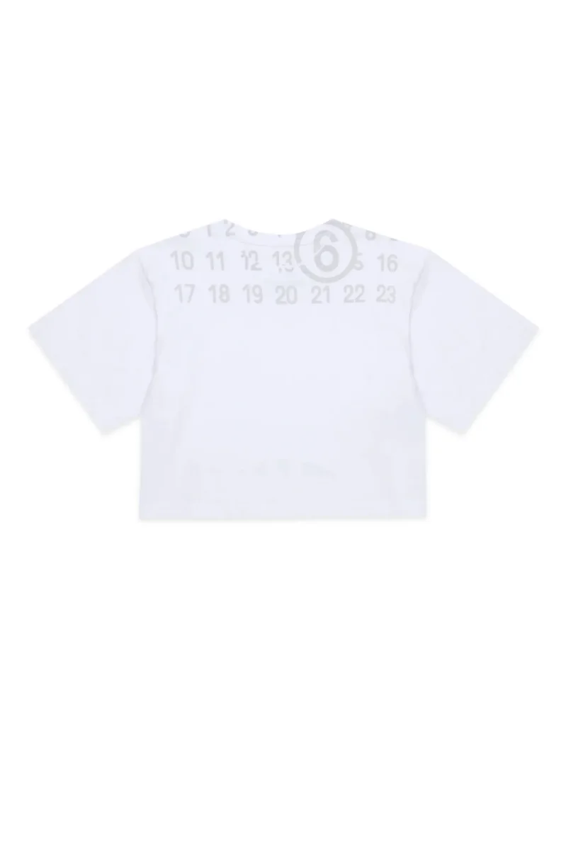 T-shirt in 100% cotone con iconica stampa numerata sul retro, dettagli a contrasto e vestibilitร cropped. Un design contemporaneo che mette in risalto lo stile distintivo del brand.