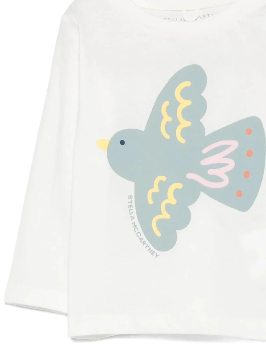 T-SHIRT MANICA LUNGA BIANCA CON STAMPA UCCELLO STELLA MCCARTNEY