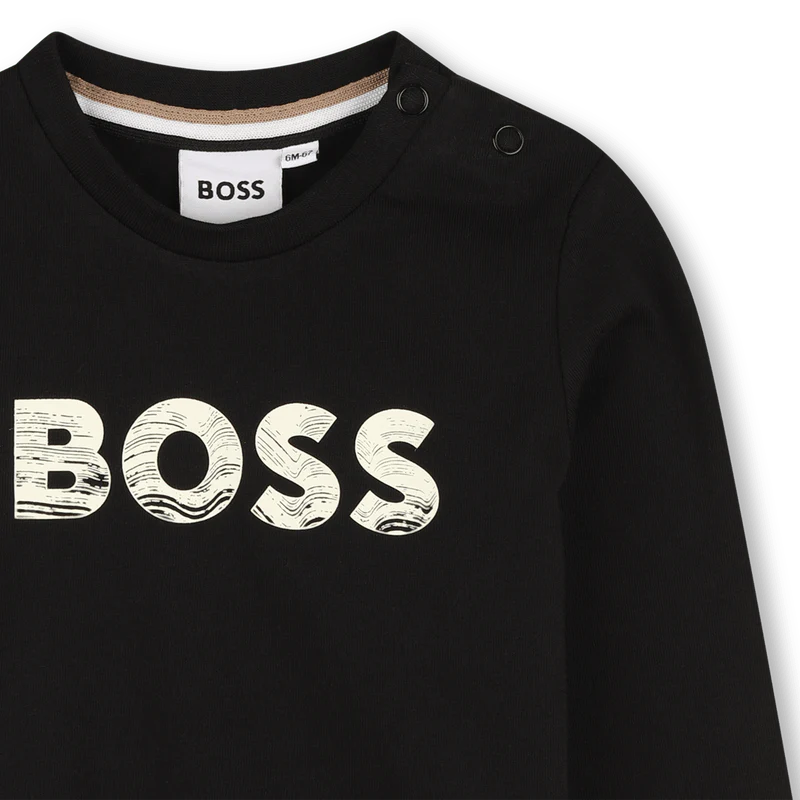 Combinando semplicitร e design distintivo, questa t-shirt BOSS in cotone a maniche lunghe presenta una chiusura a scatto sulla spalla e una stampa BOSS fantasia sul davanti. Un modello perfetto per uno stile contemporaneo, comodo e moderno.