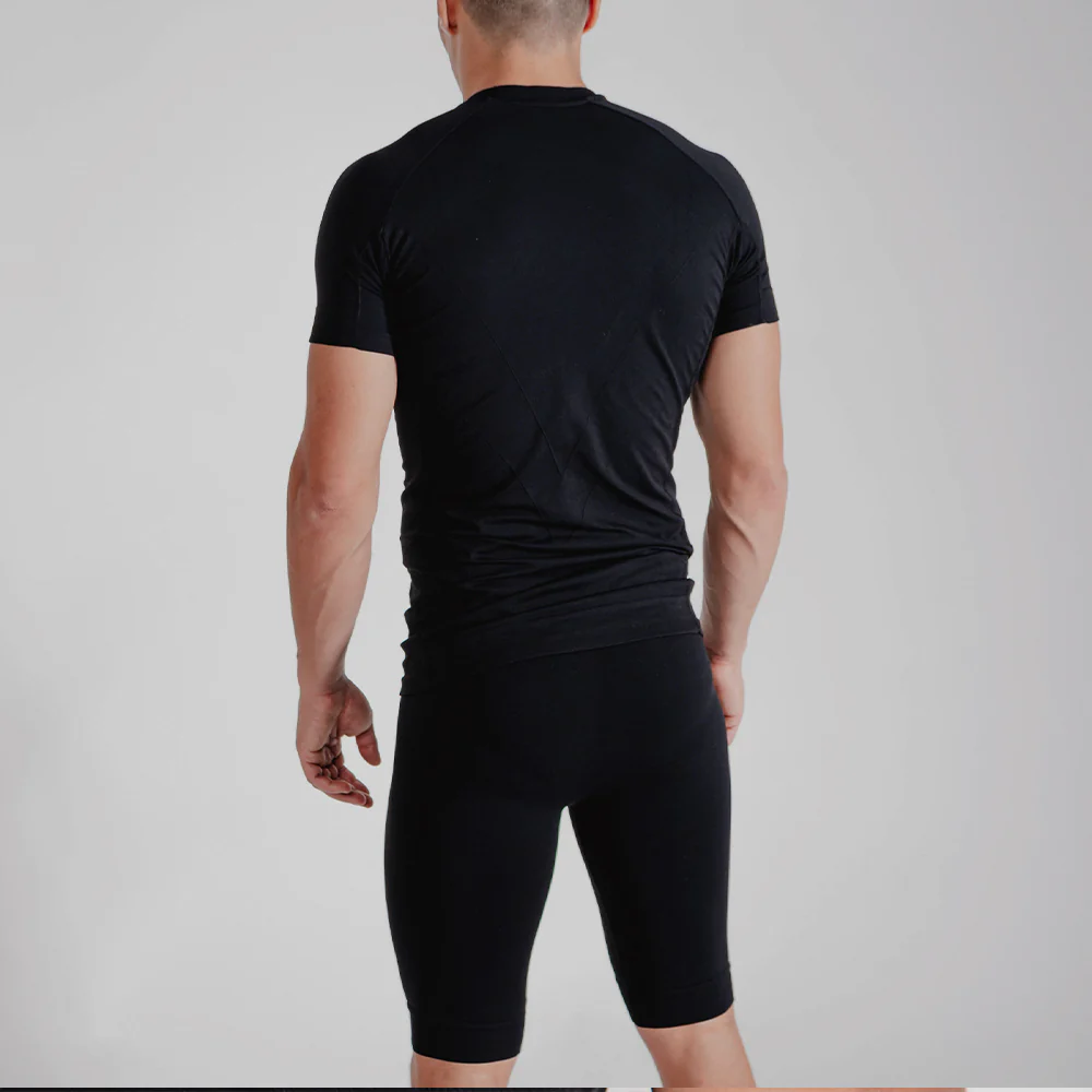 La prima t-shirt tecnica progettata con logica sartoriale che esalta pettorali, spalle e braccia mentre garantisce comfort addominale totale. Tecnologia FIR certificata Livello Performance per riduzione affaticamento muscolare e recupero accelerato.
