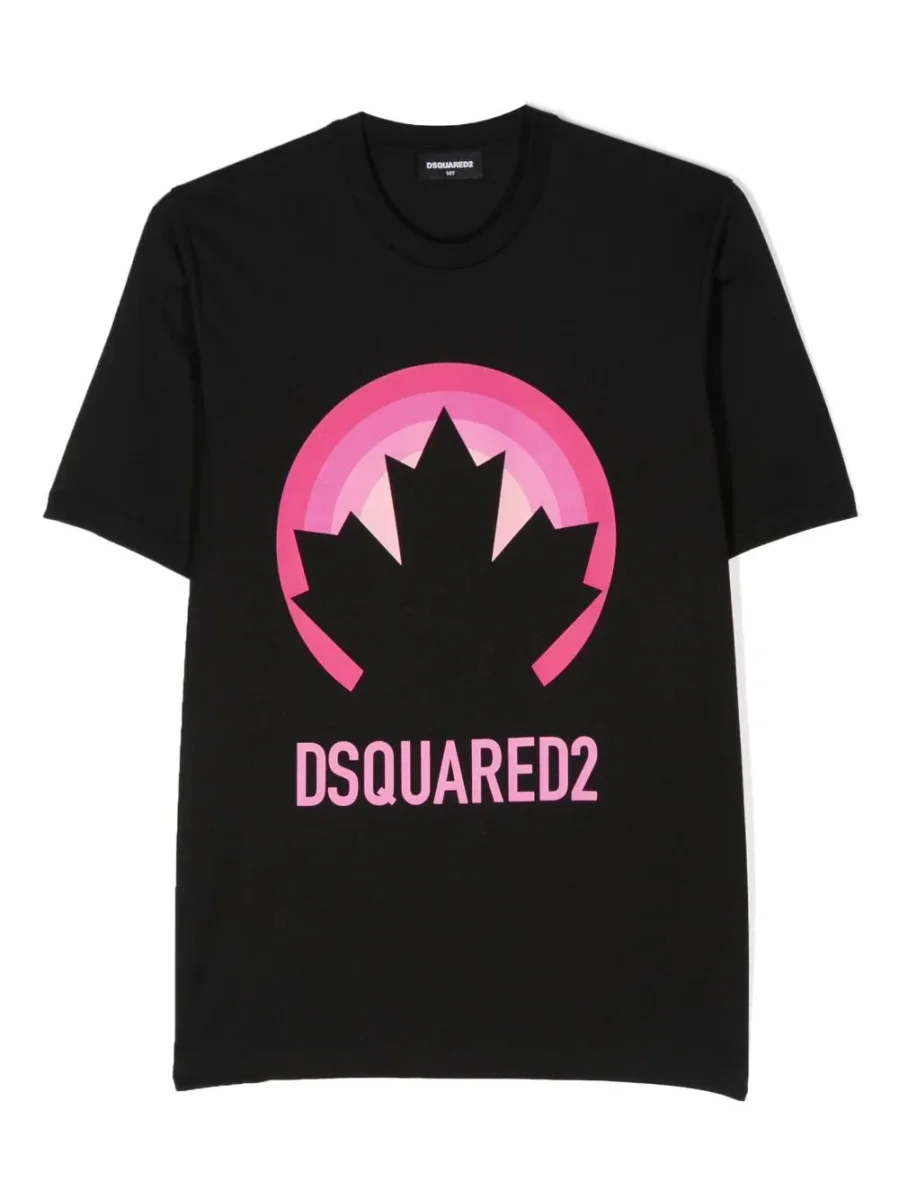 T-SHIRT NERA CON LOGO ROSA DSQUARED2