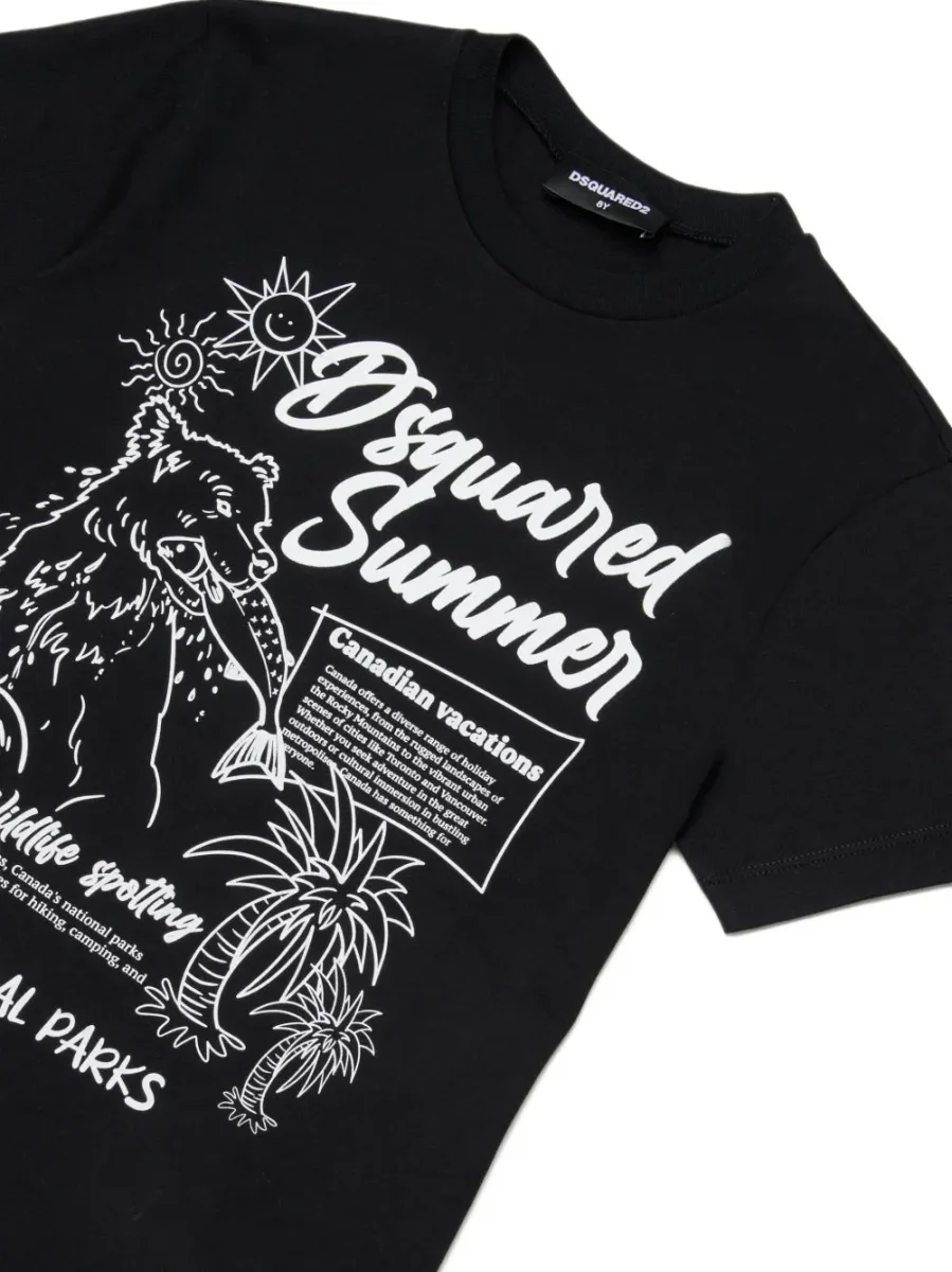 T-SHIRT NERA CON STAMPA BIANCA DSQUARED2