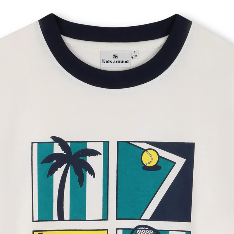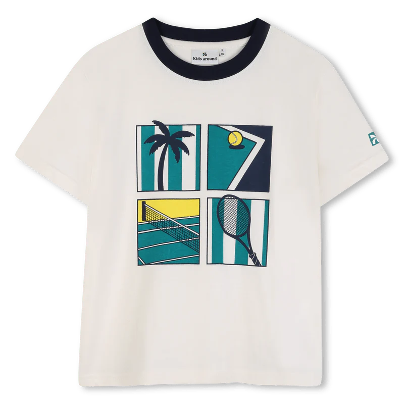 T-SHIRT PANNA CON GIROCOLLO BLU KIDS AROUND