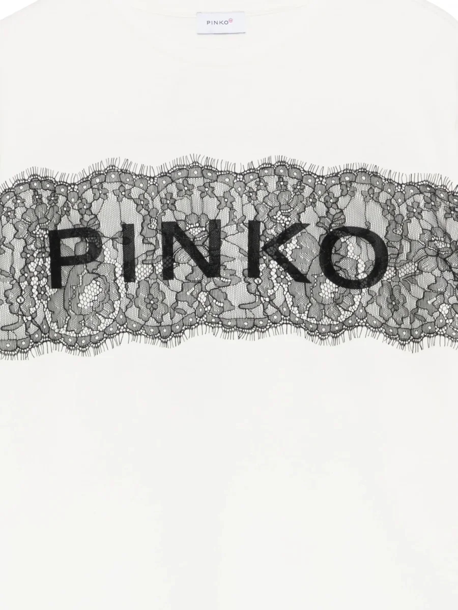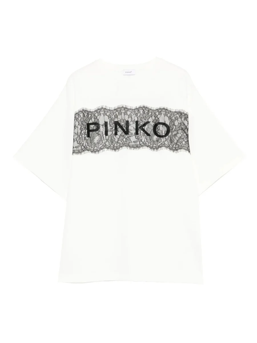 T-SHIRT PANNA CON PIZZO E LOGO NERO PINKO