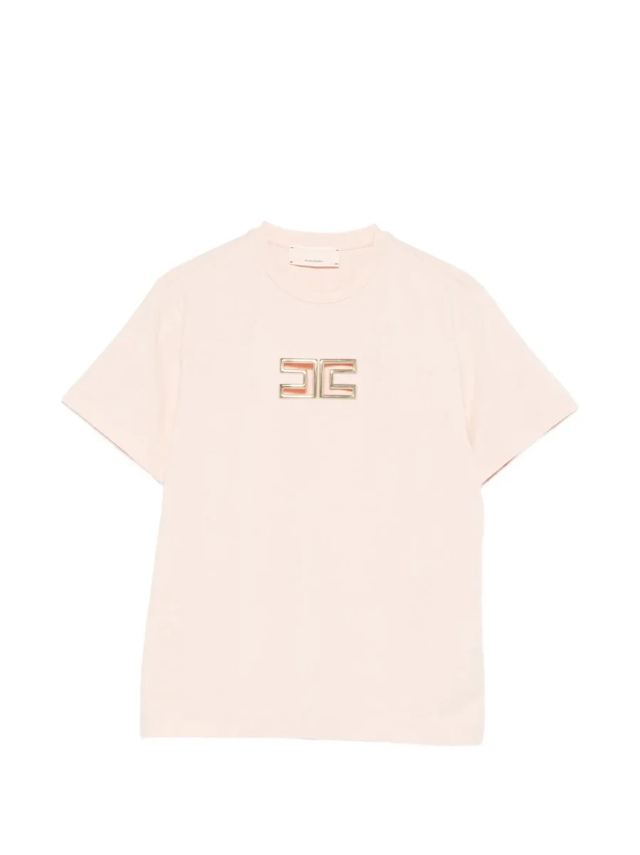 T-SHIRT ROSA PASTELLO CON LOGO IN ORO ELISABETTA FRANCHI