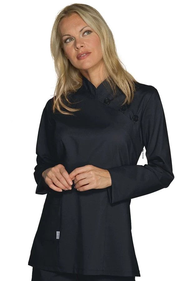 Elegante Casacca da Donna leggera ed moderna ideale per parrucchiere, saloni di bellezza, centri estetici ma anche indicata per innumerevoli contesti di lavoro dove si predilige eleganza e stile. Con il colletto leggero alla coreana questa casacca รจ realizzata nel tessuto leggero e traspirante polycotone light Isacco, facile da trattare, lavare e stirare. L’abbottonatura รจ composta da 3 bottoni alti e da una zip nascosta laterale.