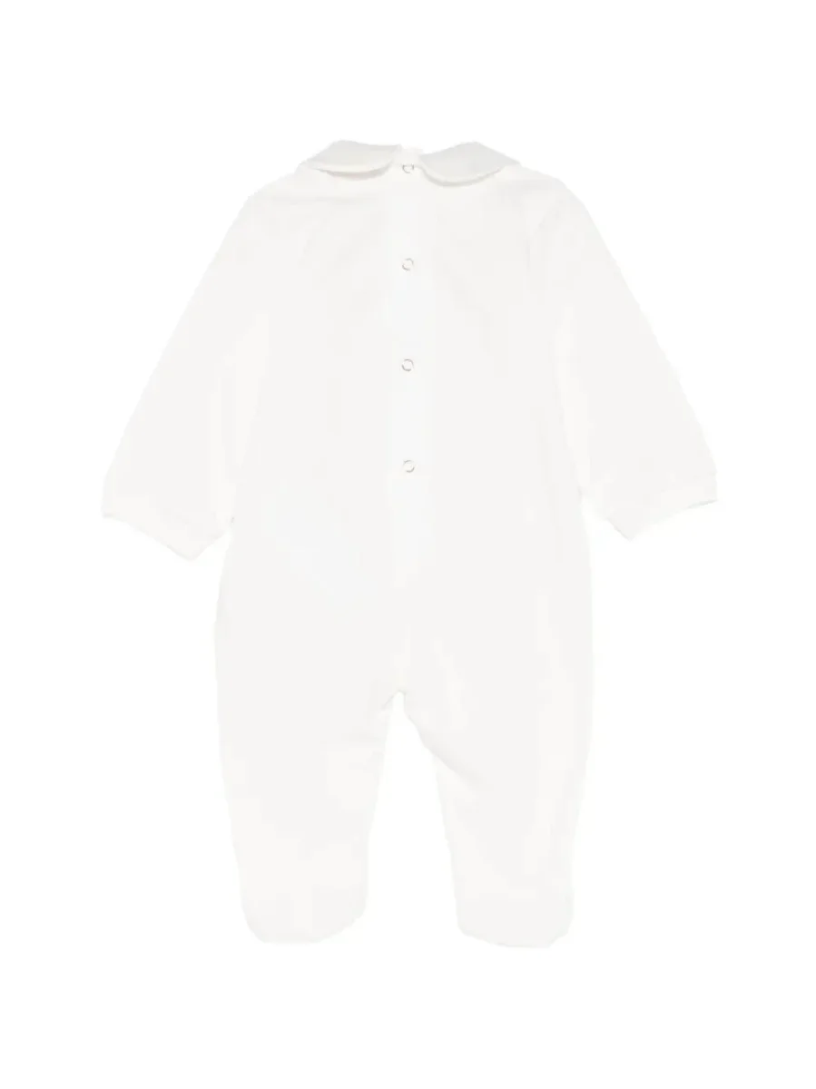 Caratteristiche bianco cotone colletto Peter Pan dettaglio con fiocco chiusura posteriore con bottone a pressione Composizione cotone 100%, poliestere 100%