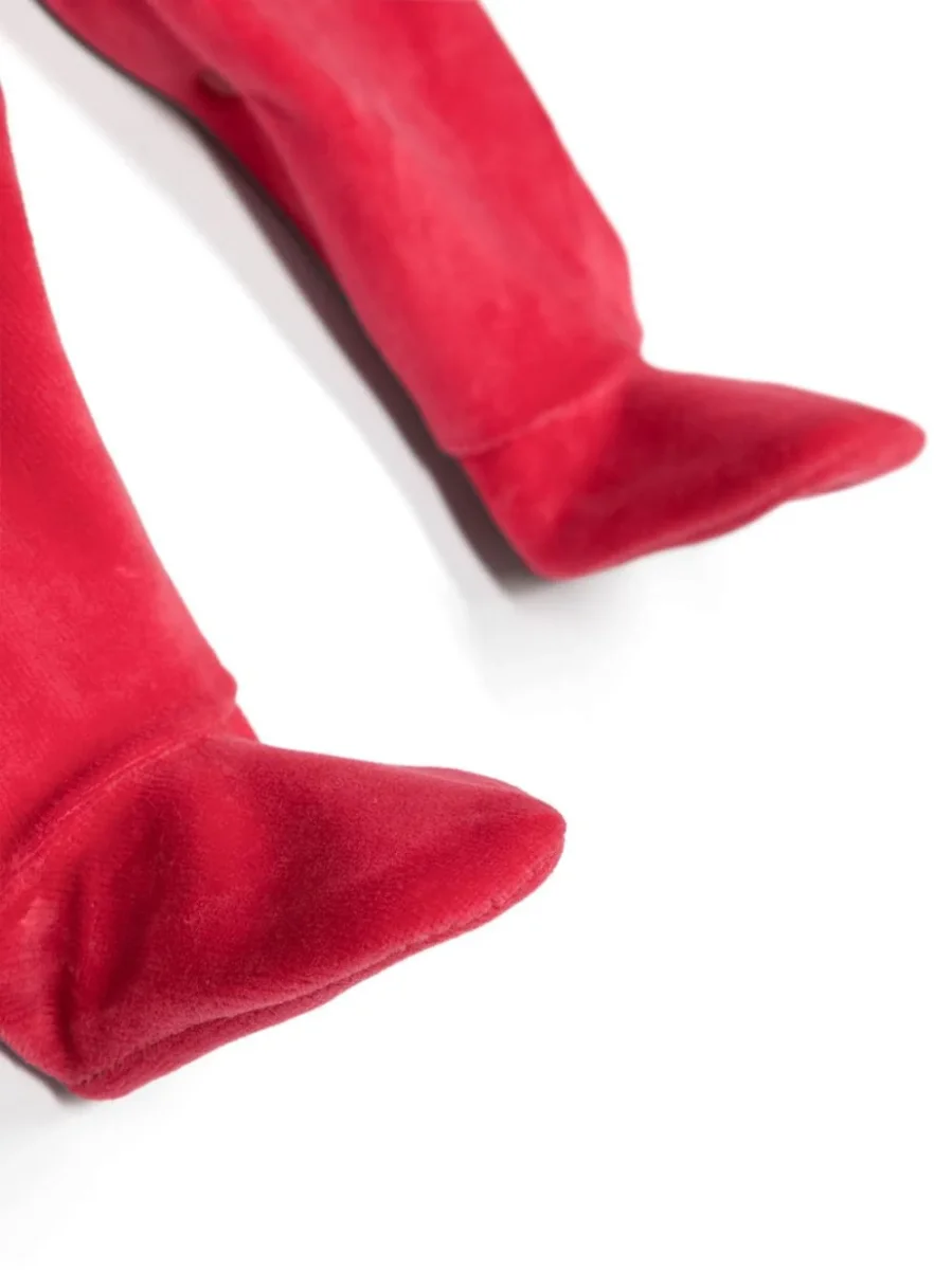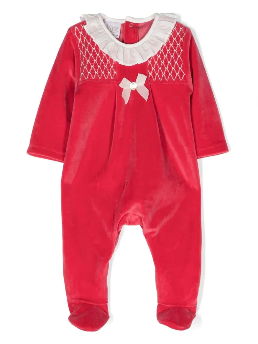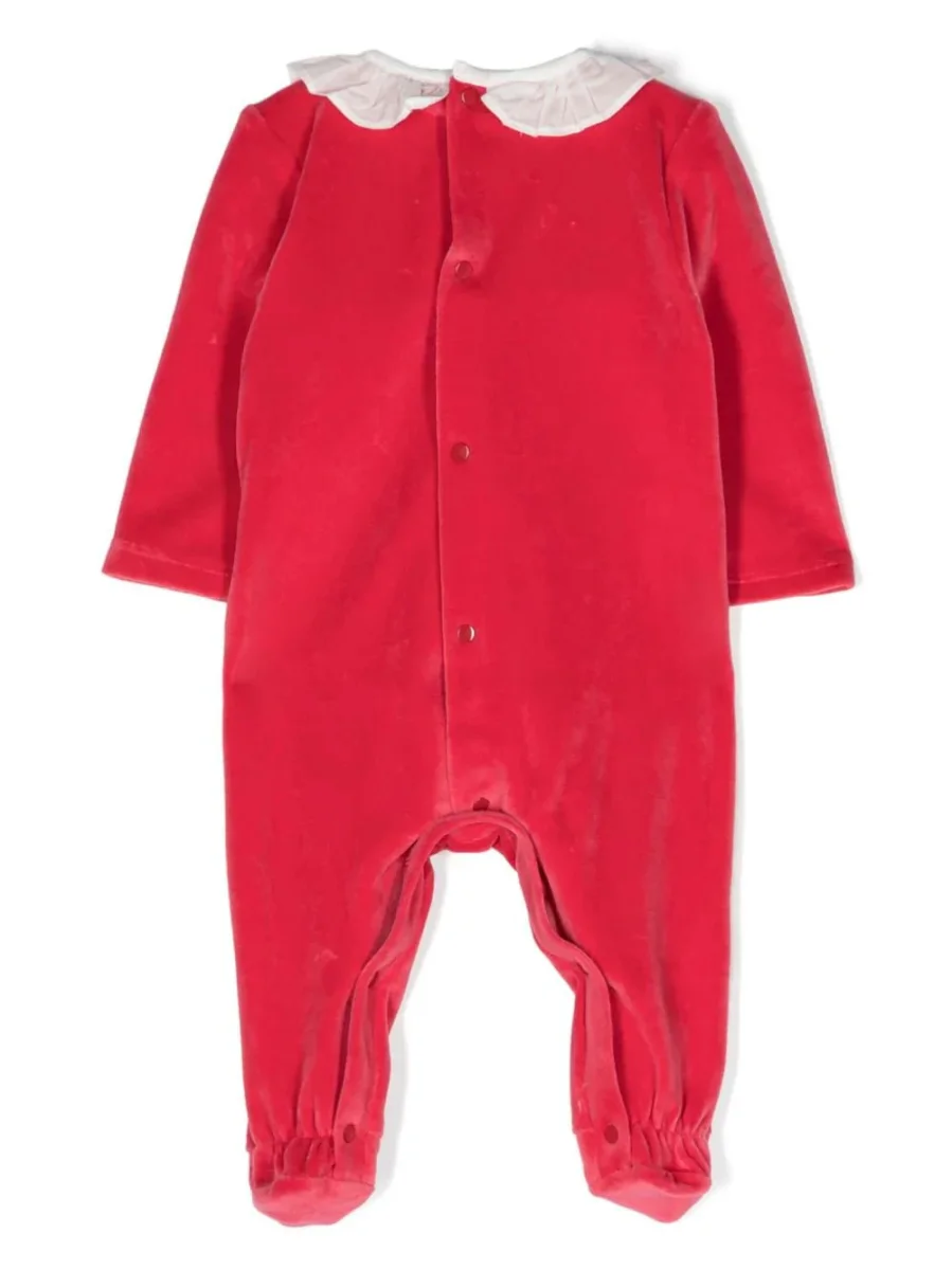 TUTINA PAZ RODRIGUEZ IN CINIGLIA ROSSA CON DECORAZIONI,RICAMI E COLLETTO BIANCHI