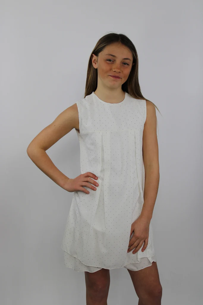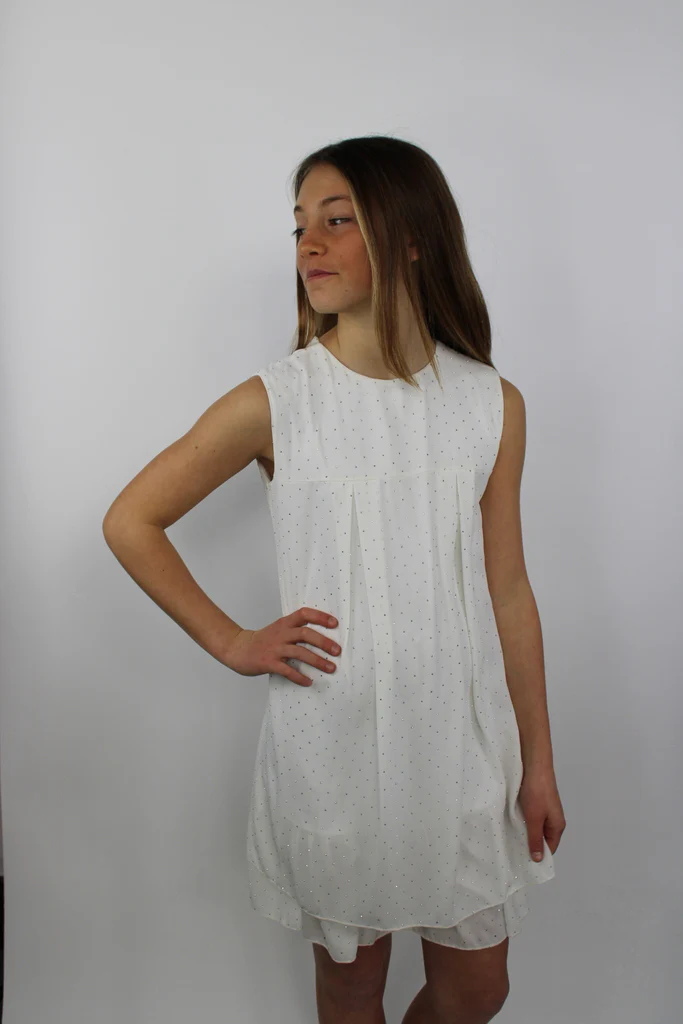 DESCRIZIONE: Vestito elegante da bambina con strass su tutto il vestito. Composizione: 100% poliestereCodice prodotto: 257649
