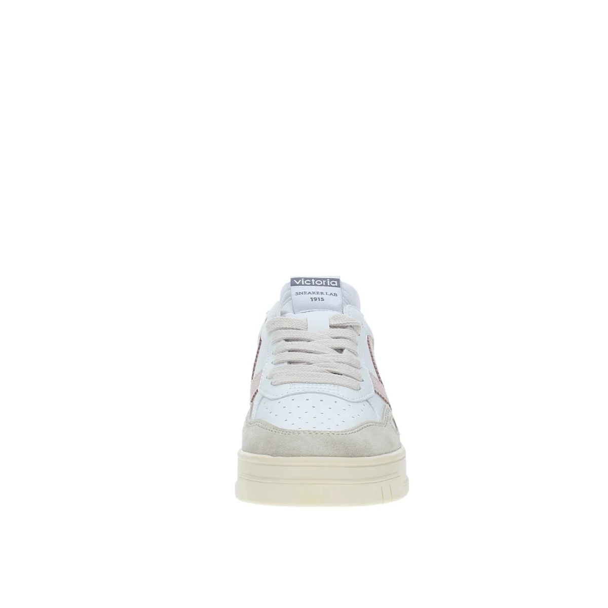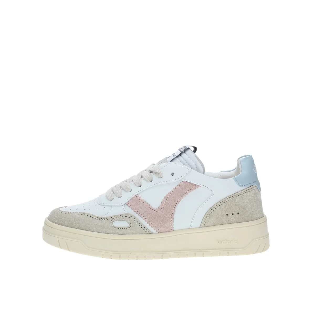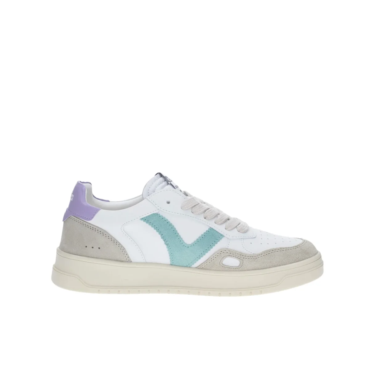 Queste sneakers unisex bianche, realizzate in materiale effetto pelle di alta qualitร , presentano dettagli sovrapposti in crosta di cuoio su punta, tallone e logo, che ne arricchiscono il design. Il contrasto tra la V retrรฒ su un lato e il dettaglio a forma di finestra sul retro le rende uniche. La suola marrone chiaro di 3,5 cm e l’allacciatura abbinata completano il look, mentre la soletta imbottita aggiuntiva assicura un comfort extra.