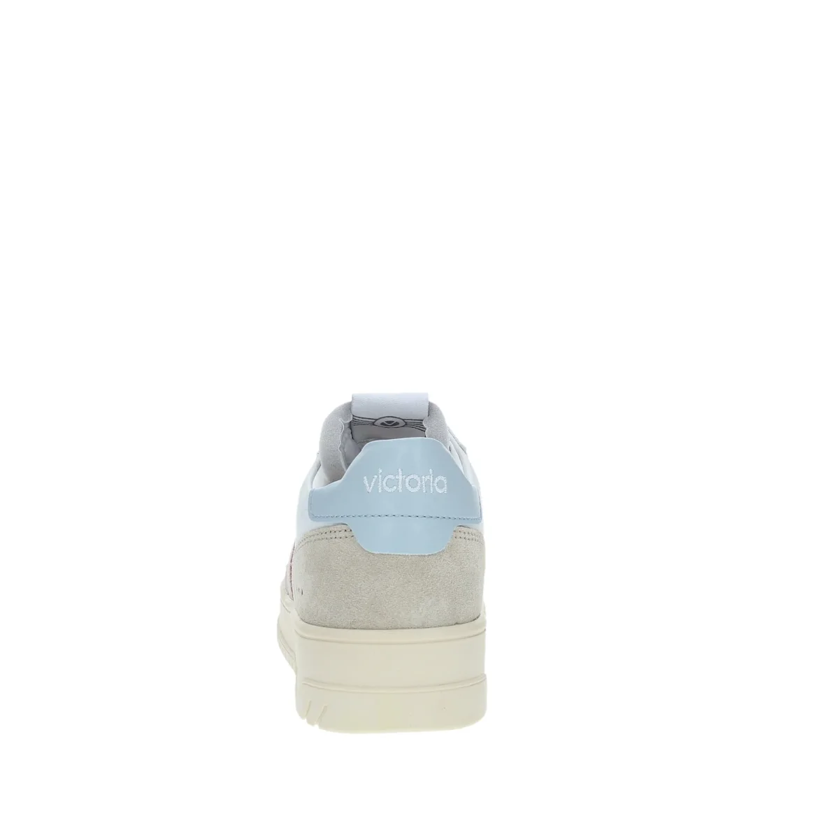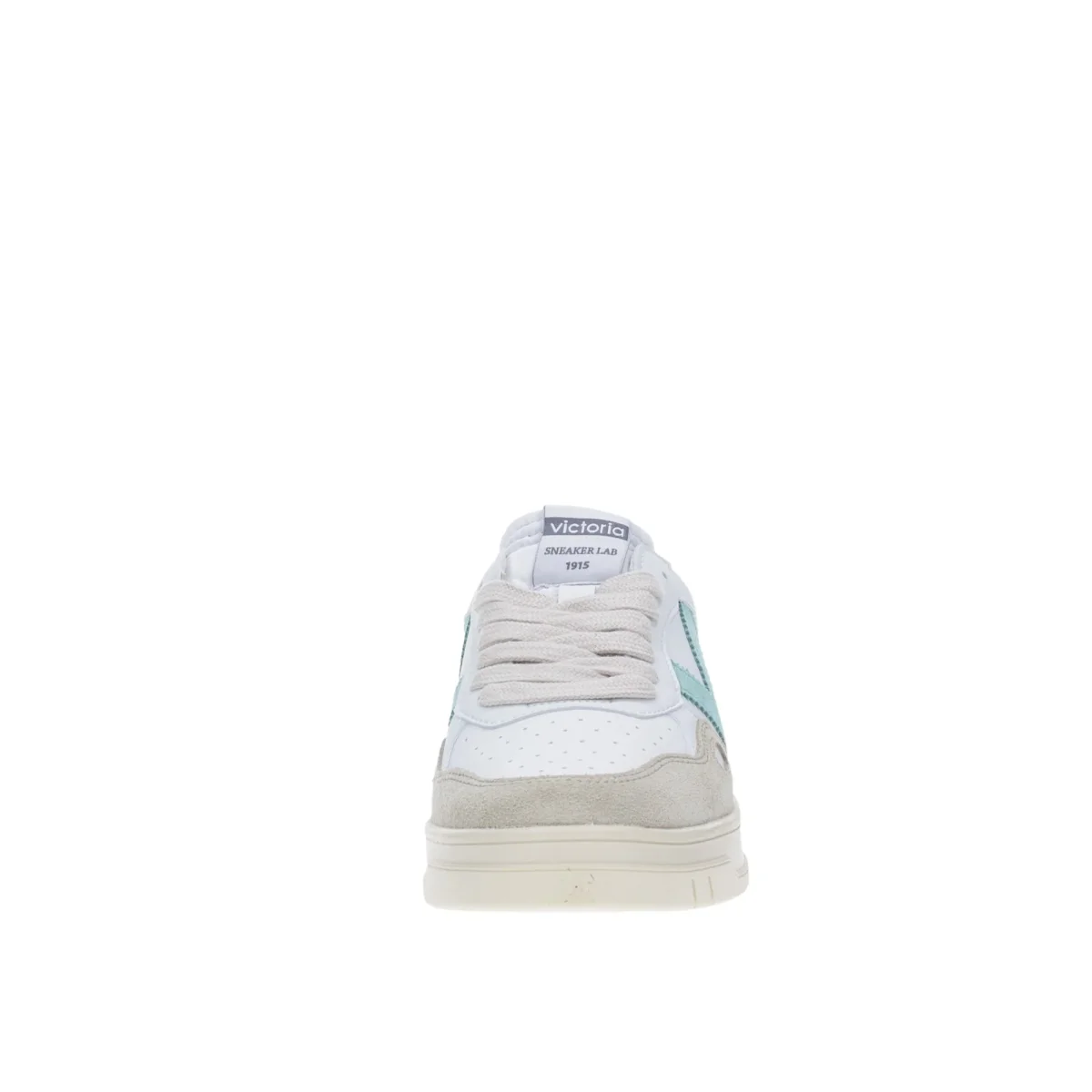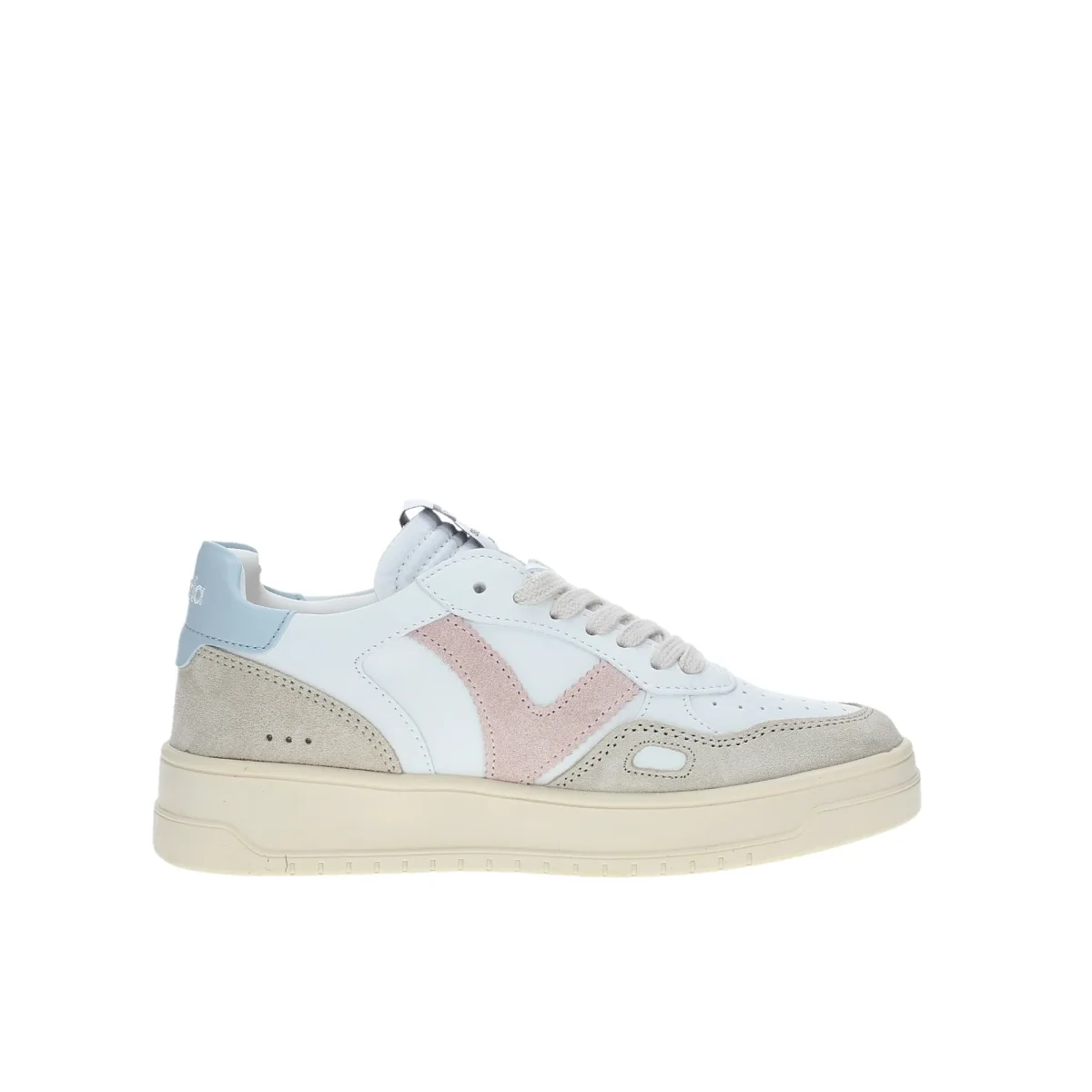 Queste sneakers unisex bianche, realizzate in materiale effetto pelle di alta qualitร , presentano dettagli sovrapposti in crosta di cuoio su punta, tallone e logo, che ne arricchiscono il design. Il contrasto tra la V retrรฒ su un lato e il dettaglio a forma di finestra sul retro le rende uniche. La suola marrone chiaro di 3,5 cm e l’allacciatura abbinata completano il look, mentre la soletta imbottita aggiuntiva assicura un comfort extra.